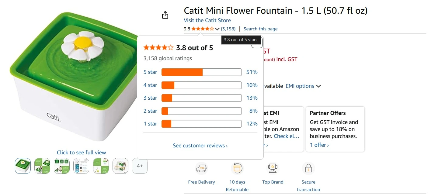 The Catit Mini Flower Fountain is a cheerful-looking, little drinking fountain that is easily accessible for smaller cats and kittens. It offers multiple drinking options and includes a triple action water filter.