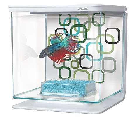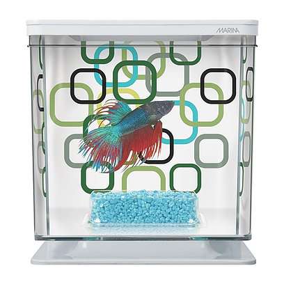 Marina Geo Bubbles Betta Kit provides a cool and trendy way to showcase your betta. It includes all the basic equipment and is perfect for first-time betta keepers. The aquarium’s chic design blends in nicely in a variety of household or office settings and is a simple way to bring a calming element to your everyday environment. With a cubed dimension of only 6″, the aquarium takes up very little space and looks great on counters, desks, podiums or mounted on a wall.