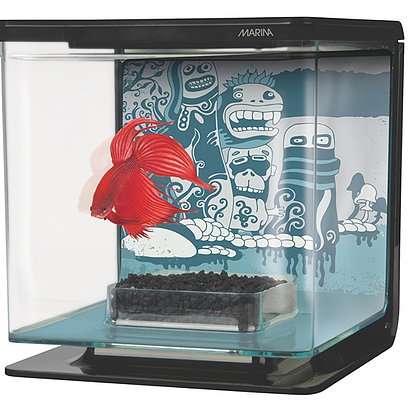 Marina Wild Thing Betta Kit provides a cool and trendy way to showcase your betta. It includes all the basic equipment and is perfect for first-time betta keepers. The aquarium’s chic design blends in nicely in a variety of household or office settings and is a simple way to bring a calming element to your everyday environment. With a cubed dimension of only 6”, the aquarium takes up very little space and looks great on counters, desks, podiums or mounted on a wall.