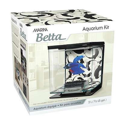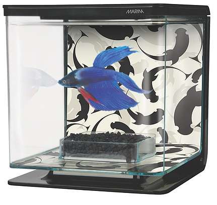 Marina Ying/Yang Betta Kit provides a cool and trendy way to showcase your betta. It includes all the basic equipment and is perfect for first-time betta keepers. The aquarium’s chic design blends in nicely in a variety of household or office settings and is a simple way to bring a calming element to your everyday environment. With a cubed dimension of only 6″, the aquarium takes up very little space and looks great on counters, desks, podiums or mounted on a wall.