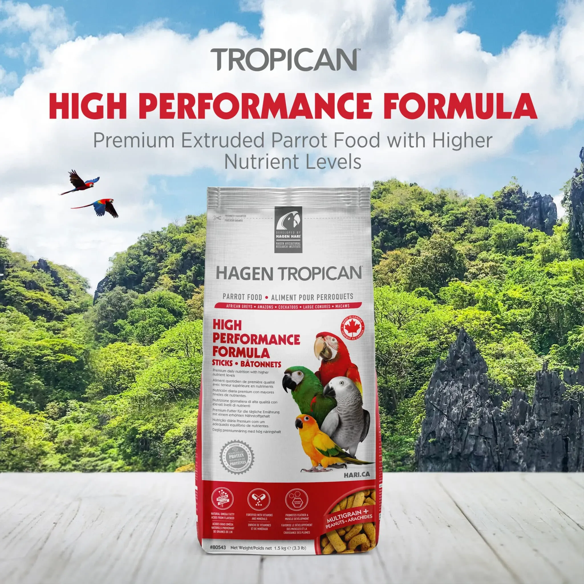 Tropican High Performance Formula delivers complete daily nutrition for parrots during weaning, fledgling, and breeding stages. It is also ideal for parrots that need extra energy, such as those living in large flight aviaries or active environments. This formula provides a richer, more calorie-dense diet to support their higher nutritional needs.